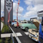 On my arrival, it was nice to see 2 members already parked and waiting. It was a good sight to see Neville’s FX sedan and camper and Brenton parked outside the dealership. I could only imagine what it would have looked like back in the fifties with the earlies parked out the front of Holden. There was already a two-tone green sedan on the lot in readiness for the day. This car belongs to another Essendon local, who happened to join us on the Airways museum earlier in the year.