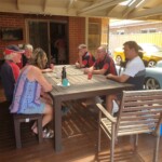 We then moved on to visit the “King” — Jason King. There is no cover at Queens Park, so Jason and I offered our home from lunchtime where we had an ample under cover area for the forecasted afternoon rain. Some brought their picnic lunch, while some used the barbie. I nicked up the supermarket to grab some food to cater for anyone who needed a feed. It was finished off with a nice fruit platter. There was plenty to go around.