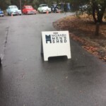 Kay and I met Geoff Ogden just after 7am to open our garage and tow the BBQ trail­er and place it oppo­site the entrance to the Guide hall where the Man’s Shed had their stalls set up.